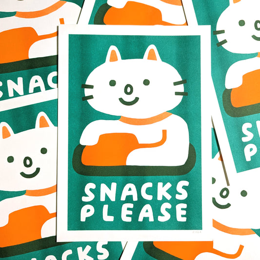 Snacks Please (Cat) Risograph Print